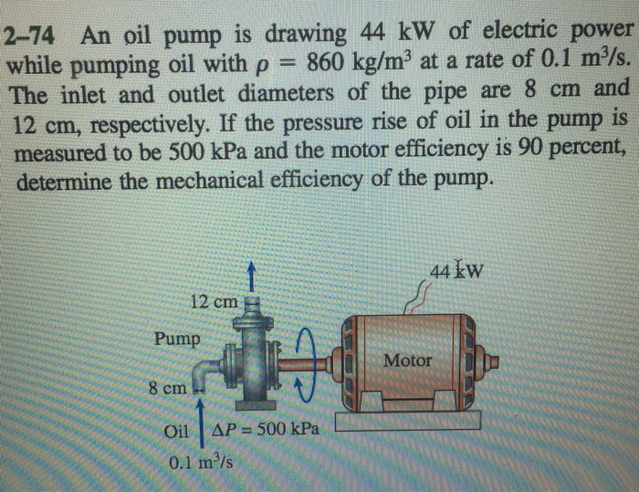 Solved 2 74 An Oil Pump Is Drawing 44 Kw Of Electric Power Chegg Com